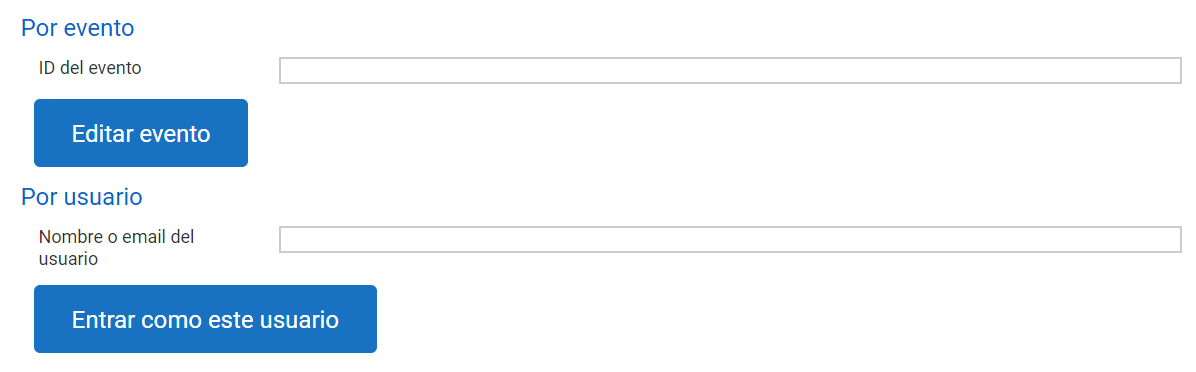 3. Introduce el correo electrónico del usuario al que quieres suplantar en la sección Por usuario y haz clic sobre el botón Entrar como este usuario.
