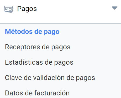 Los métodos de pago se activan o desactivan a nivel de plataforma, de modo que solamente los Administradores podrán hacerlo desde el Panel de Administración > Pagos > Métodos de pago: